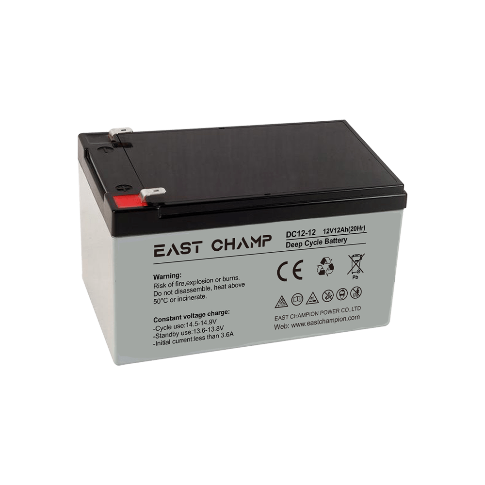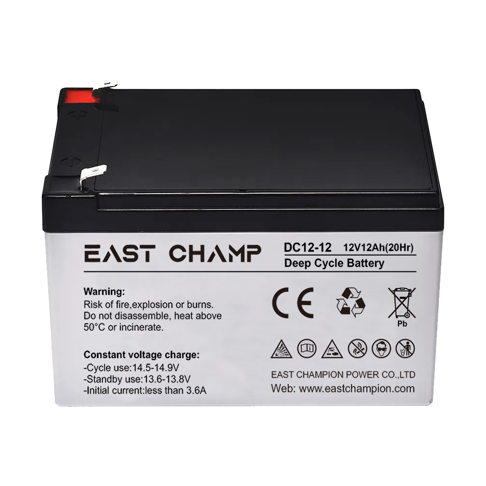 EAST CHAMP Deep Cycle series batteries are engineered to hold a substantial amount of stored current, enabling significant discharge between charging sessions. They feature robust, non-porous battery plates that can endure repeated heavy discharge and charge cycles (deep cycling). These deep cycle batteries utilize a distinct chemistry for the active paste material in the plates and a slightly more potent electrolyte than standard GS batteries, contributing to an extended lifespan in deep cycle applications.