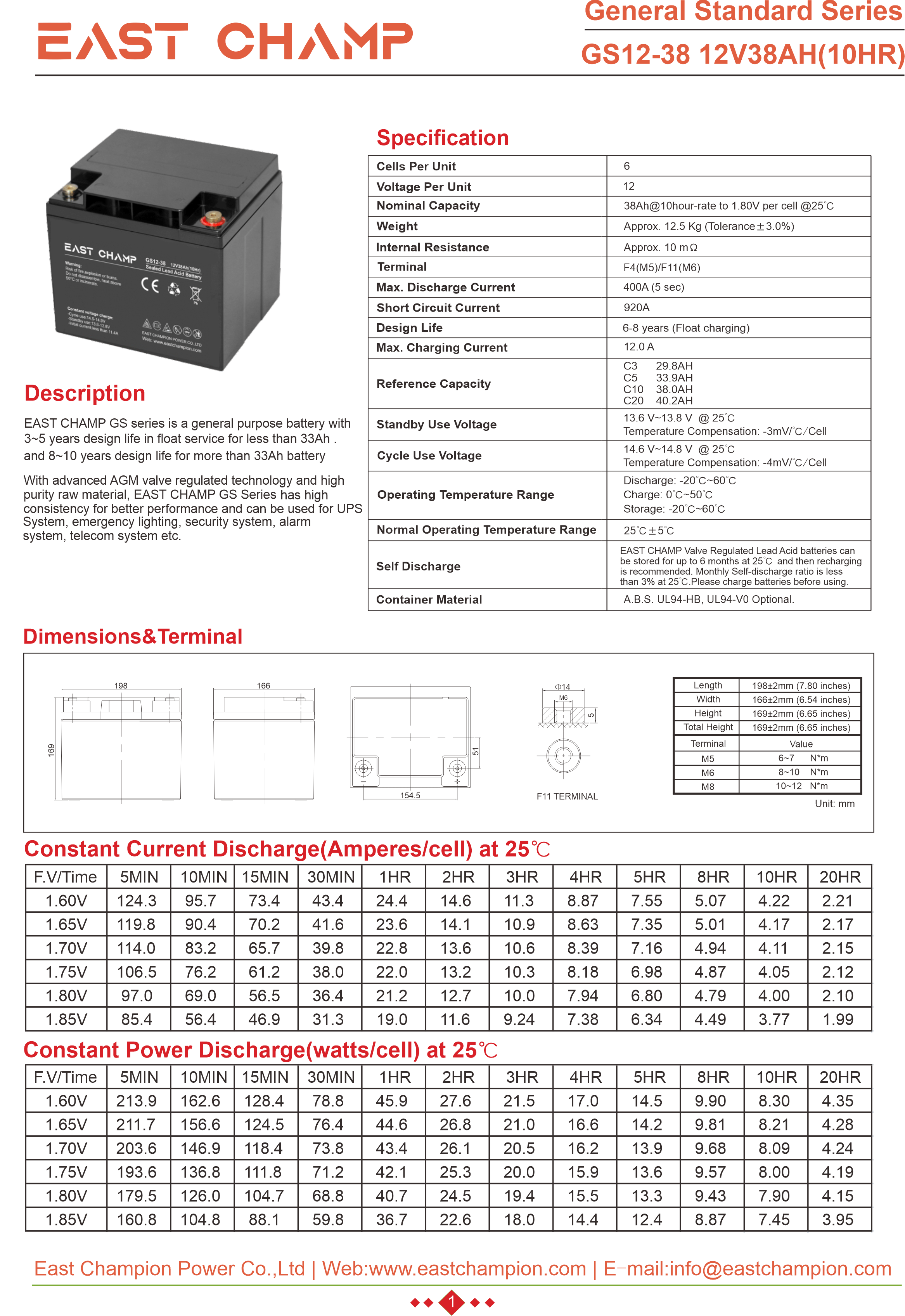 • Battery Model: GS12-38/ 12V38AH